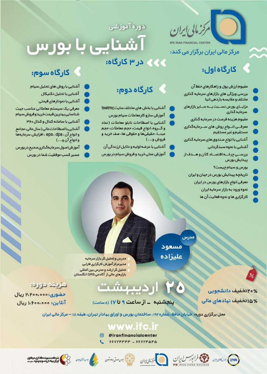 شاید این روزها اسم بورس، خیلی بیشتر از قبل به گوشتان خورده باشد. احتمالا خبرهایی از سودآوری این بازار شنیده اید و وسوسه شدید که سرمایه خودتان را به بورس بیاورید. شاید هم برخی از اطرافیانتان به بورس آمدند و ضرر کردند، حالا شما هم می ترسید.اما ترس و وسوسه معیارهای مناسبی برای ورود به بورس نیست. برای ورود به این بازار پیشرفته مالی، باید از دانش کافی برخوردار باشید. به همین منظور مرکز مالی ایران، با بررسی نیاز مخاطبان تاز وارد به بازار سرمایه، اقدام به برگزاری دوره آموزشی بازار سرمایه در 3 کارگاه کرده است.