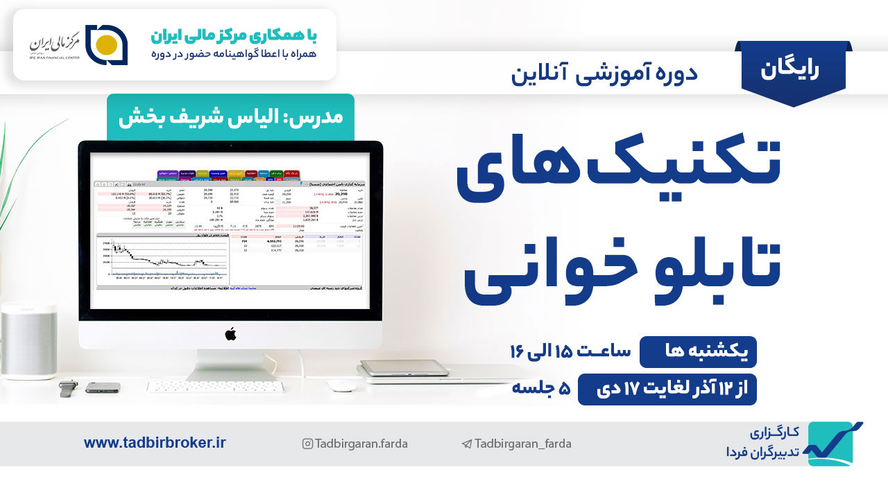 «مرکز مالی ایران به عنوان جامعترین و معتبرترین نهاد آموزشی بازار سرمایه با همکاری کارگزاری تدبیرگران فردا، برگزار میکند.»