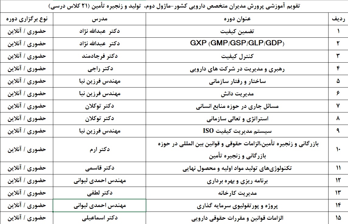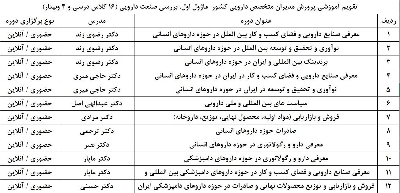 جهت مشاهده اطلاعات بیشتر در خصوص این دوره آموزشی، به نشانی pharmamanage.ir مراجعه نمایید.