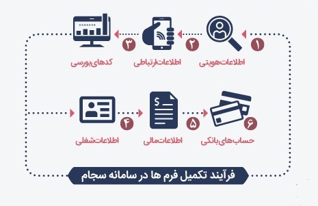جهت عضویت و ثبت کردن اطلاعات متقاضیان در سامانه‌ی سجام نیاز است برخی مراحل را طی کرد. به تصویر زیر دقت کنید: